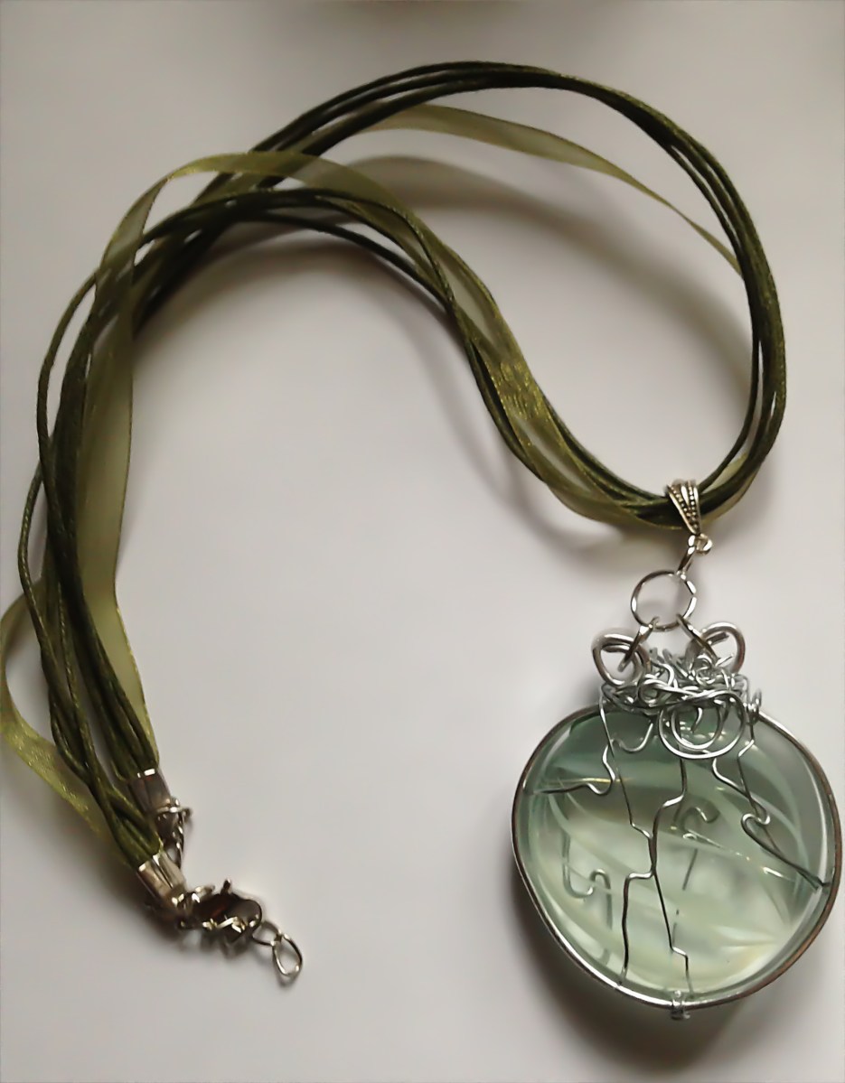 Rutliated glass with thick silver frame necklace